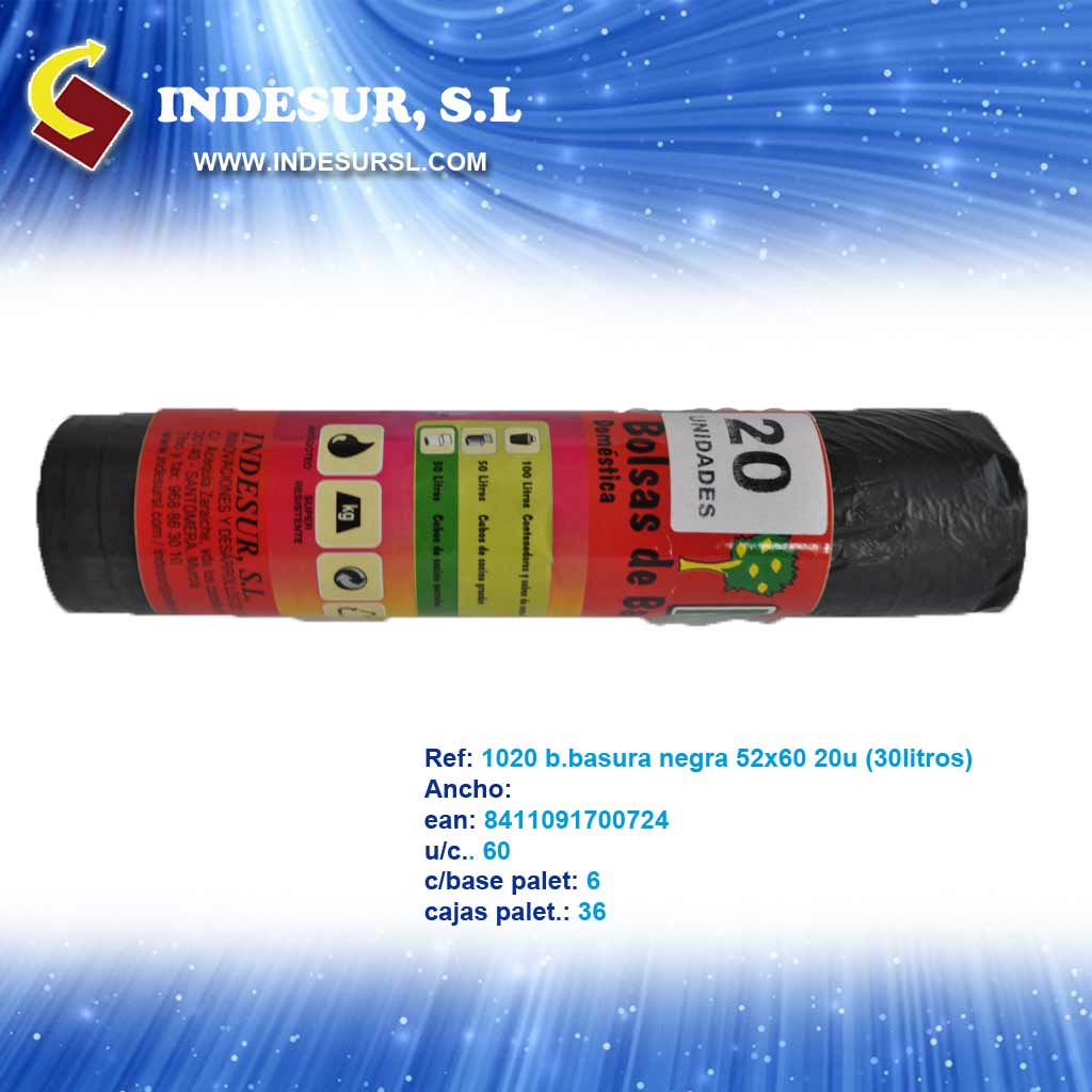1020 b.basura negra 52x60 20u (30litros)ean.8411091700724 u/c 80 c/bas 6 c/p 36