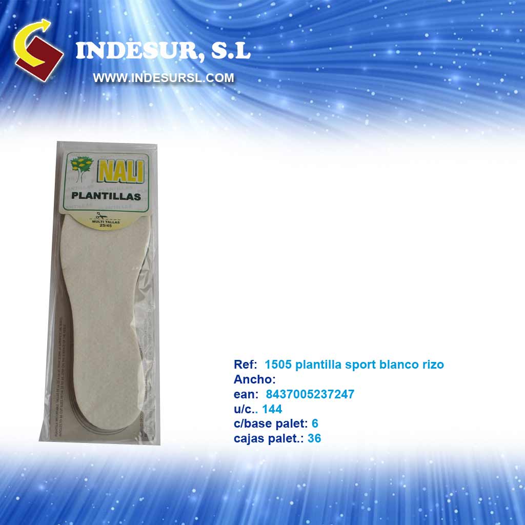 1505 plantill sport blanco rizo ean:8437005237247 u/c 144 c/base 6 c/palet 36