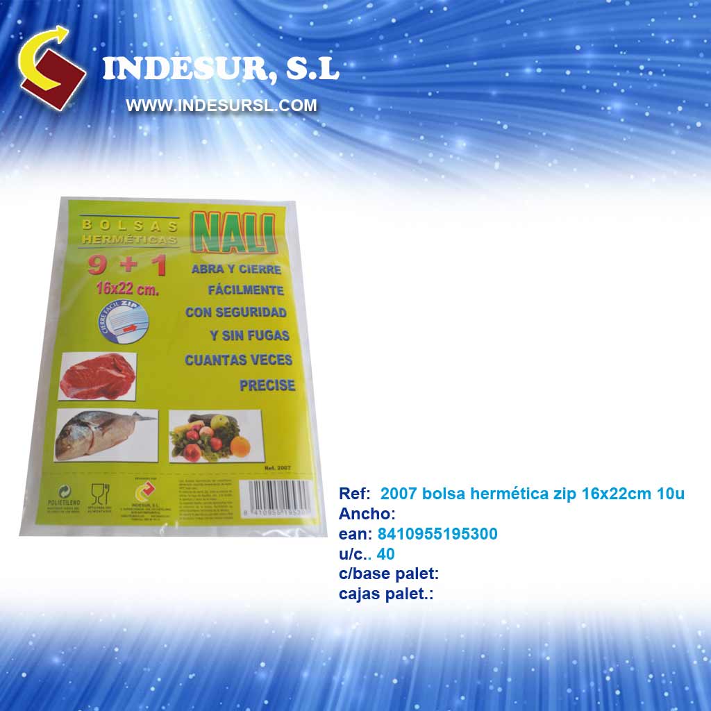 2007 bolsa hermetica zip 16x22cm 10u.ean 8410955195300 u/caja.40