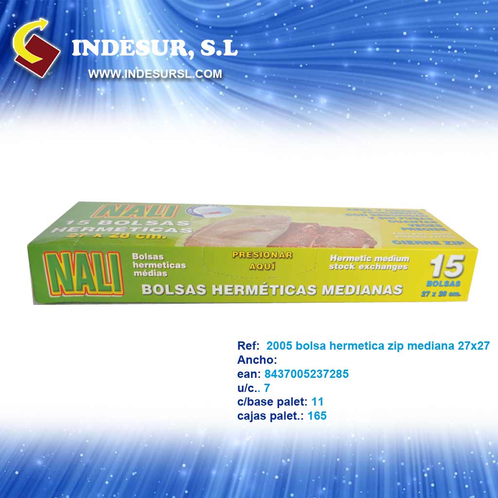 2005 bolsa hermetica zip mediana 27x27 ean.8437005237285 u/bja. 7 bja/base 11 bja palet 165