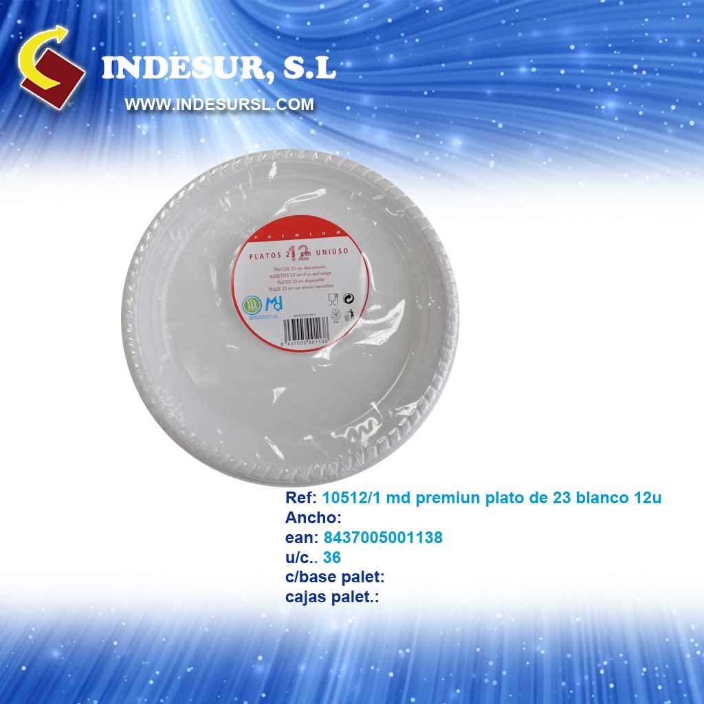 10512/1 md premiun plato de 23 blanco 12u ean. 8437005001138 u/c 36