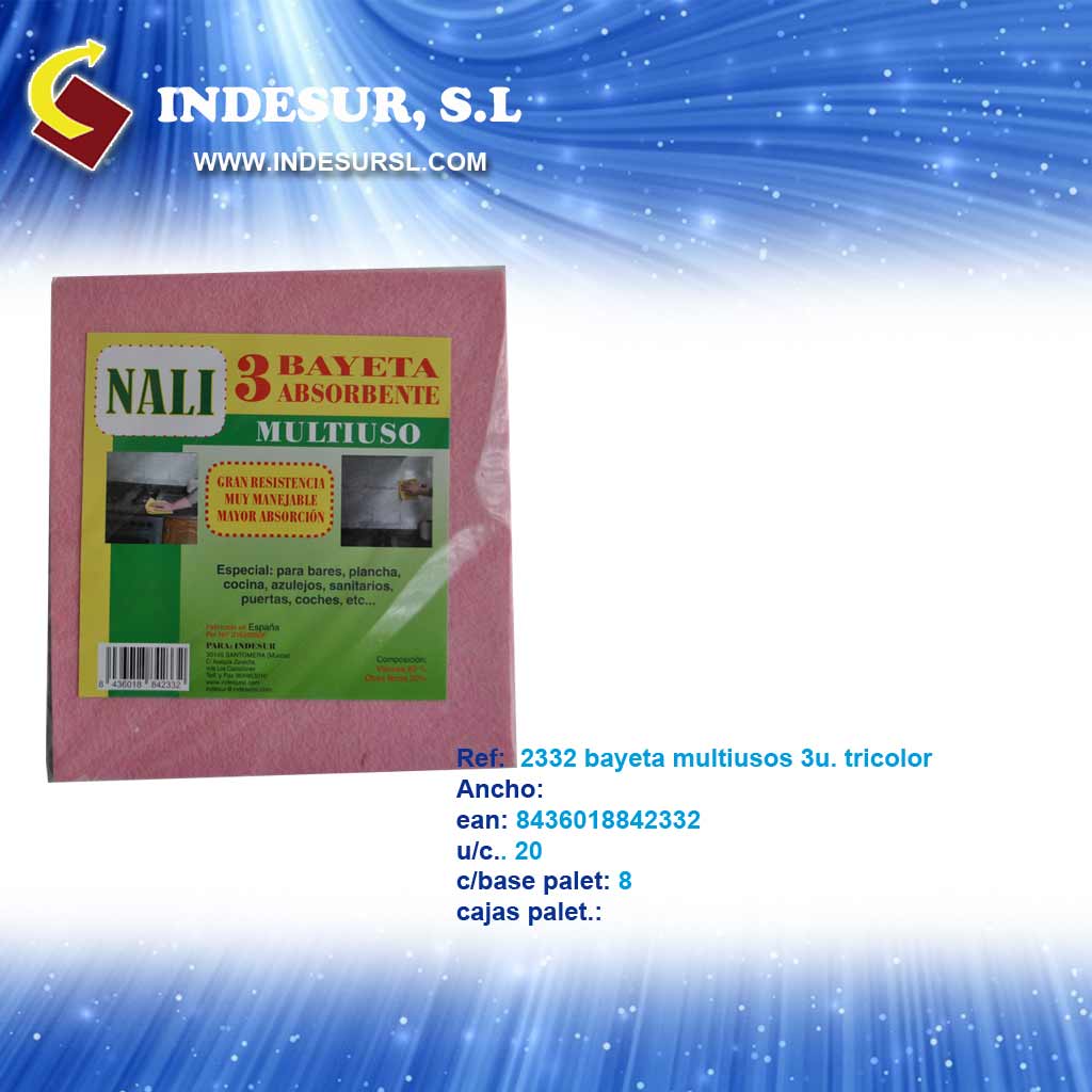 2332 bayeta multiusos 3u. tricolor.ean 8436018842332 u/c. 20 caja base 8