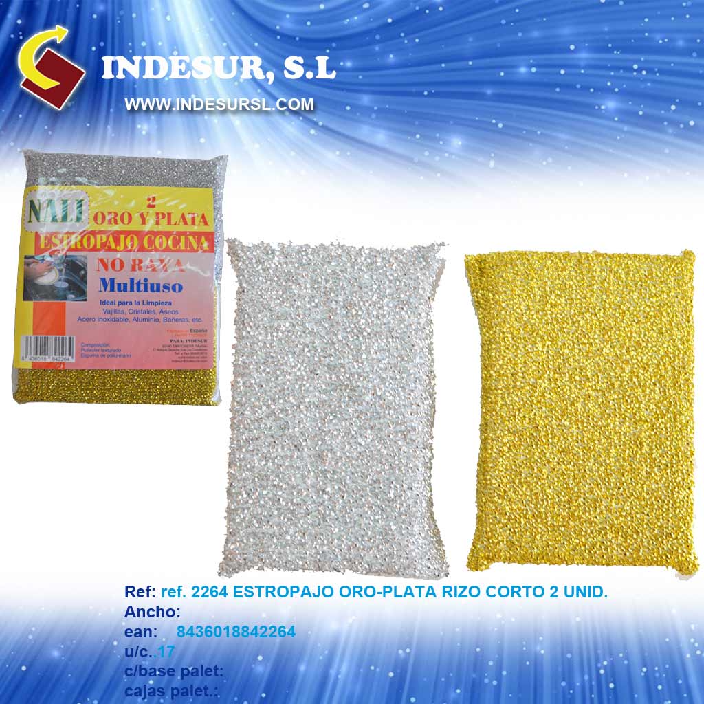 2264 ESTROPAJO ORO-PLATA RIZO CORTO 2 UNID.EAN8436018842264 U/CAJ ..17