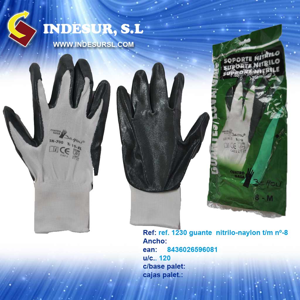 1230 guante nitrilo-naylon t/m nº 8 ean.84360265596081.u/c 120 caja base 6 caja palet 36