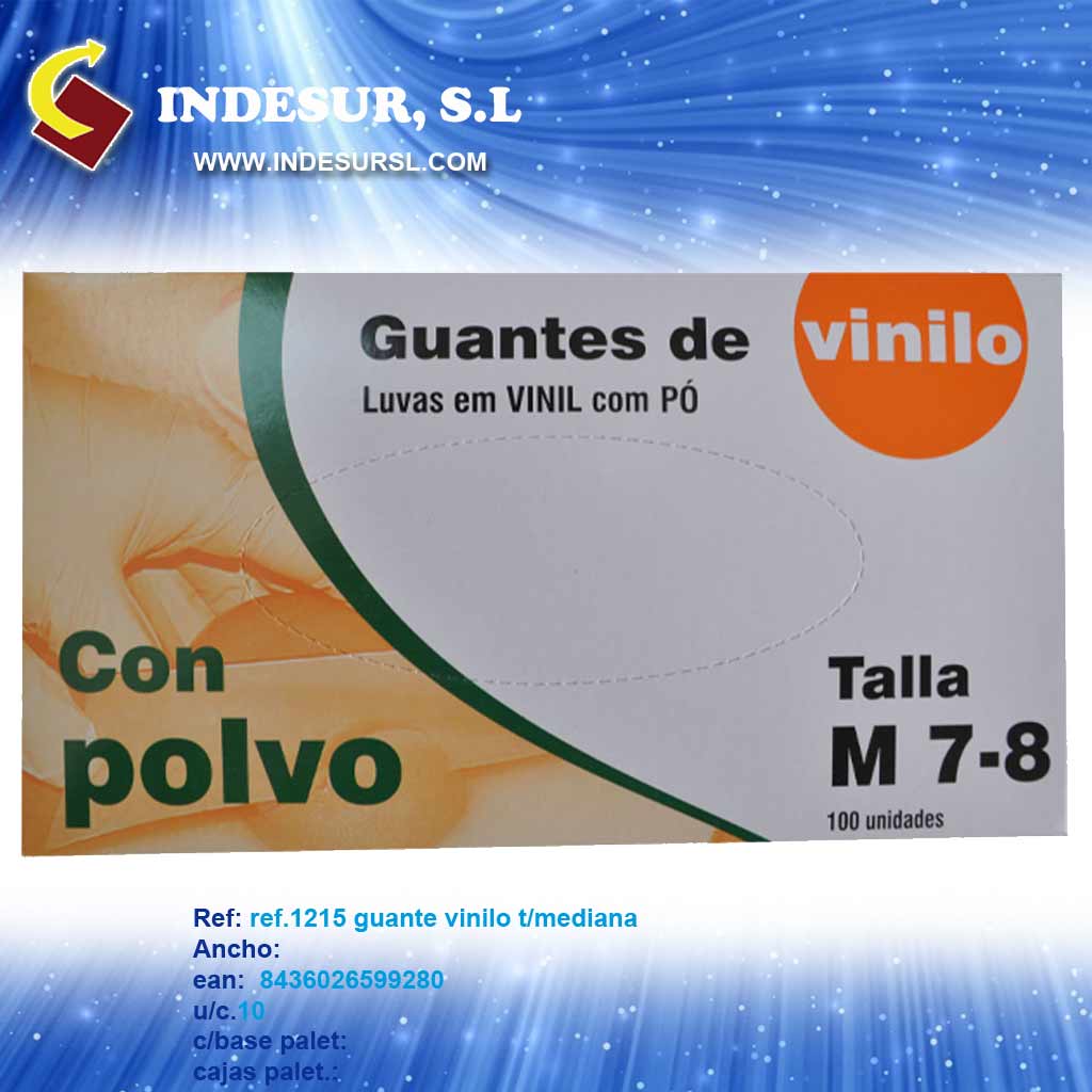 1215 guante vinilo t/mediana (7-8) u/caja 10 caja base 9 caja palet 54.