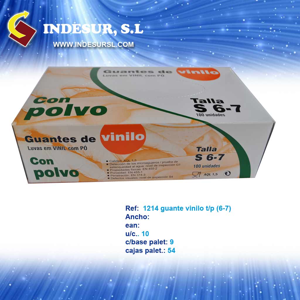 1214 guante vinilo t/p (6-7) u/caja 10 caja base 9 caja palet 54