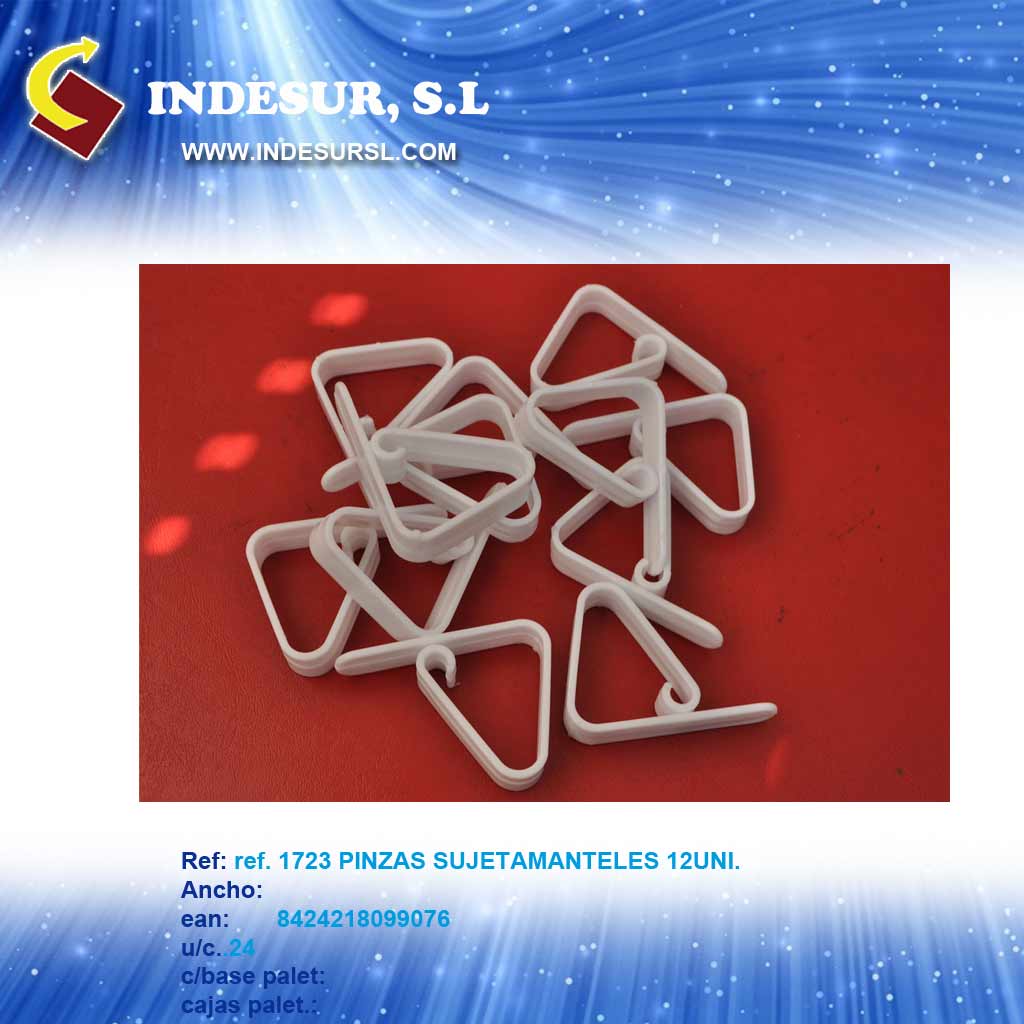 1723 PINZAS SUJETAMANTELES 12UNI. EAN. 8424218099076 BANDEJAS DE 25 VENTAS.
